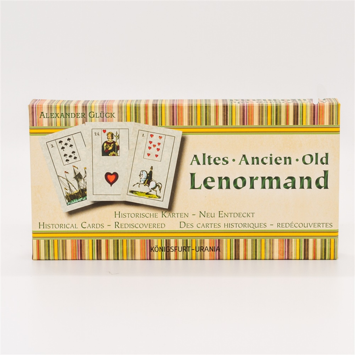 The atmosphere of the early Lenormand cards, an invitation to a very special experience. 36 historical cards in their original format (4,4 x 7,6 cm) with pointy corners (typical for the time) in a lovely sturdy box. The accompanying booklet by Alexander Gluck draws a fascinating line from the promordial cards to todays application of them. 36 Cards, 96pp Booklet.