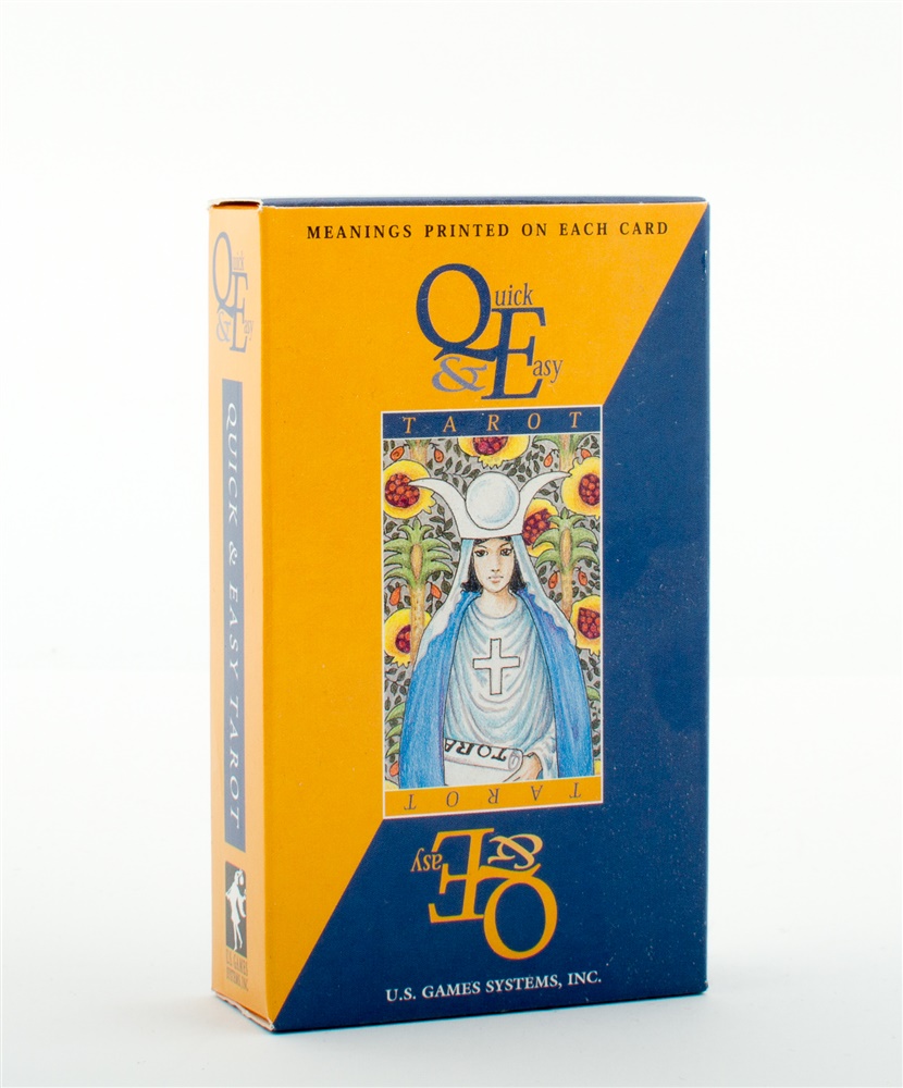 The colorful, 78-card deck is based on the bestseller Universal Waite Tarot deck. Quick & Easy Tarot has both the divinatory meanings and reversed meanings printed right on the cards, so there is no need to consult a book. The illustrations of this unique deck are based on the iconic artwork of Pamela Colman Smith, which has been re-colored by Mary Hanson-Roberts with soothing colors, and fresh, n