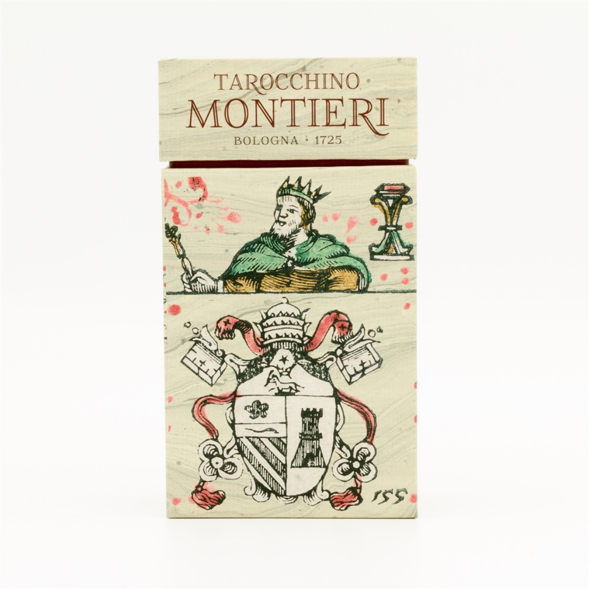 Created in 1725 by Dean Montieri, this is one of the rarest Tarot decks in the world, as most of them were burnt due to the influence of the Church. The deck follows the reduced number of cards as in the Bologna variant and does not feature illustrations on the cards, but rather indexes and notes by Montieri about XVIII century society, politics and geography.