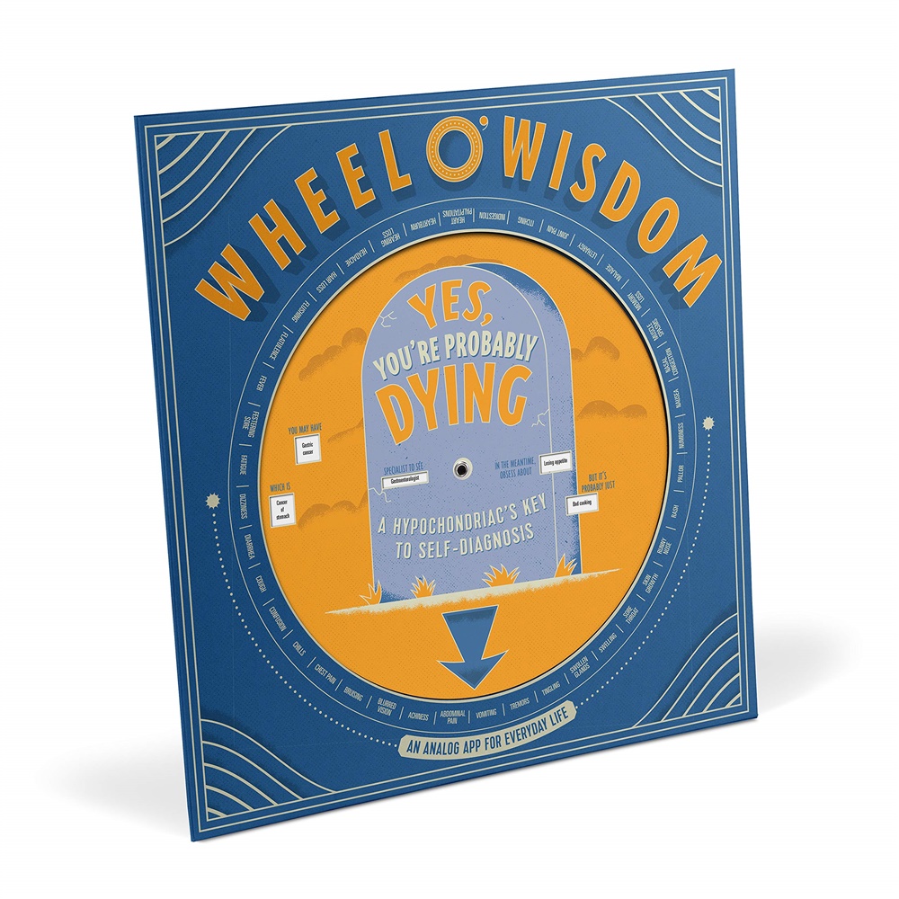 Get immediate answers to life's everyday dilemmas! Our Wheels o' Wisdom share insight with a simple spin—like how to put a hypochondriac's mind at ease (or, in overdrive). Shares 40 common symptoms matched to its worst-case scenario. Go-to stocking stuffer ideas for friends and family who love to freak about their health